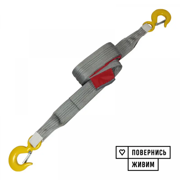 Головна особливість цього ременя - це два міцних гака, які забезпечують надійне закріплення вантажу. Гаки легко закріплюються на каркасі або кузові автомобіля, а також на інших транспортних засобах, що робить процес буксирування максимально простим та безпечним.