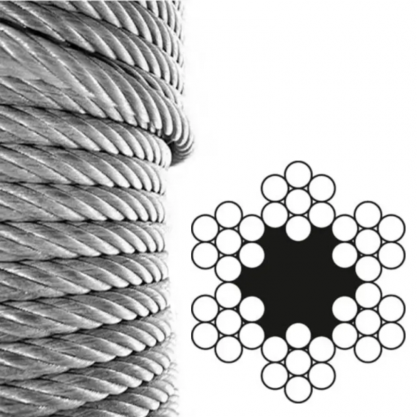 Канат виготовляється з якісної сталі згідно з установленими стандартами, що гарантує його надійність та довговічність. Висока міцність каната дозволяє використовувати його для підйому вантажів, фіксації обладнання та інших технічних завдань, де потрібна велика стійкість до навантажень.