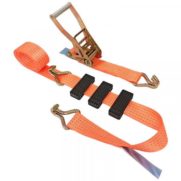 Основною особливістю цього ременя є зварні гаки, які дозволяють швидко та безпечно закріпити вантаж на платформі автовоза. Гаки виготовлені з високоякісної сталі, що забезпечує їх довговічність і надійність.